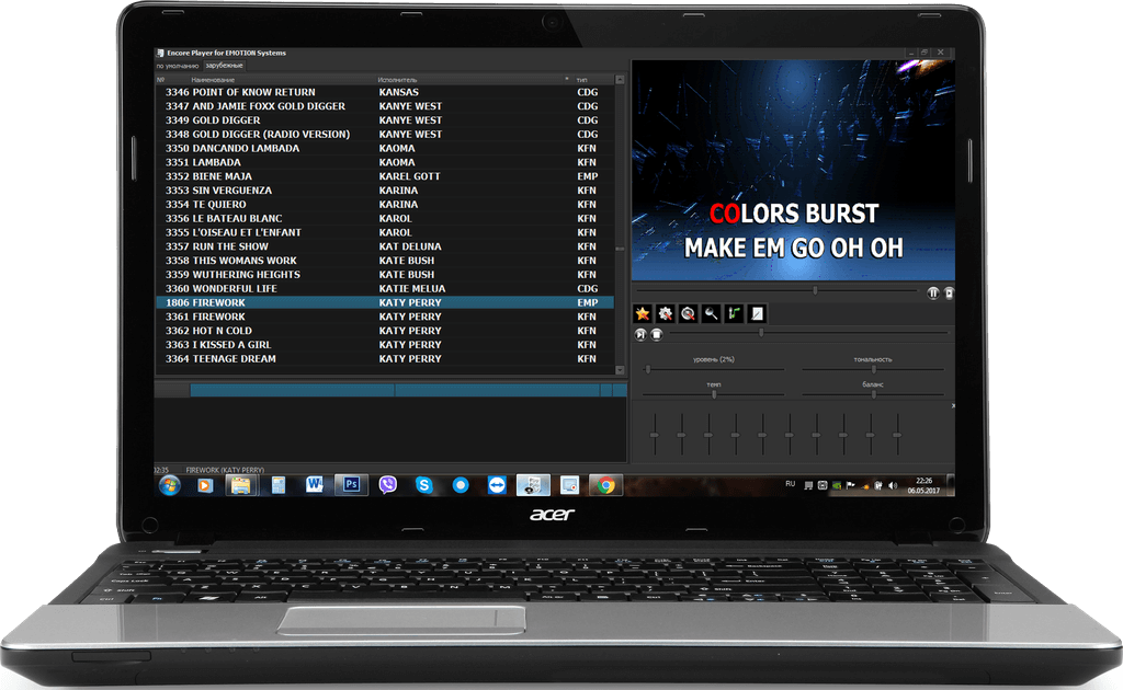 • Динамически модифицируемый плейлист с возможностью предварительной установки тональности на каждую фонограмму в плей-листе.