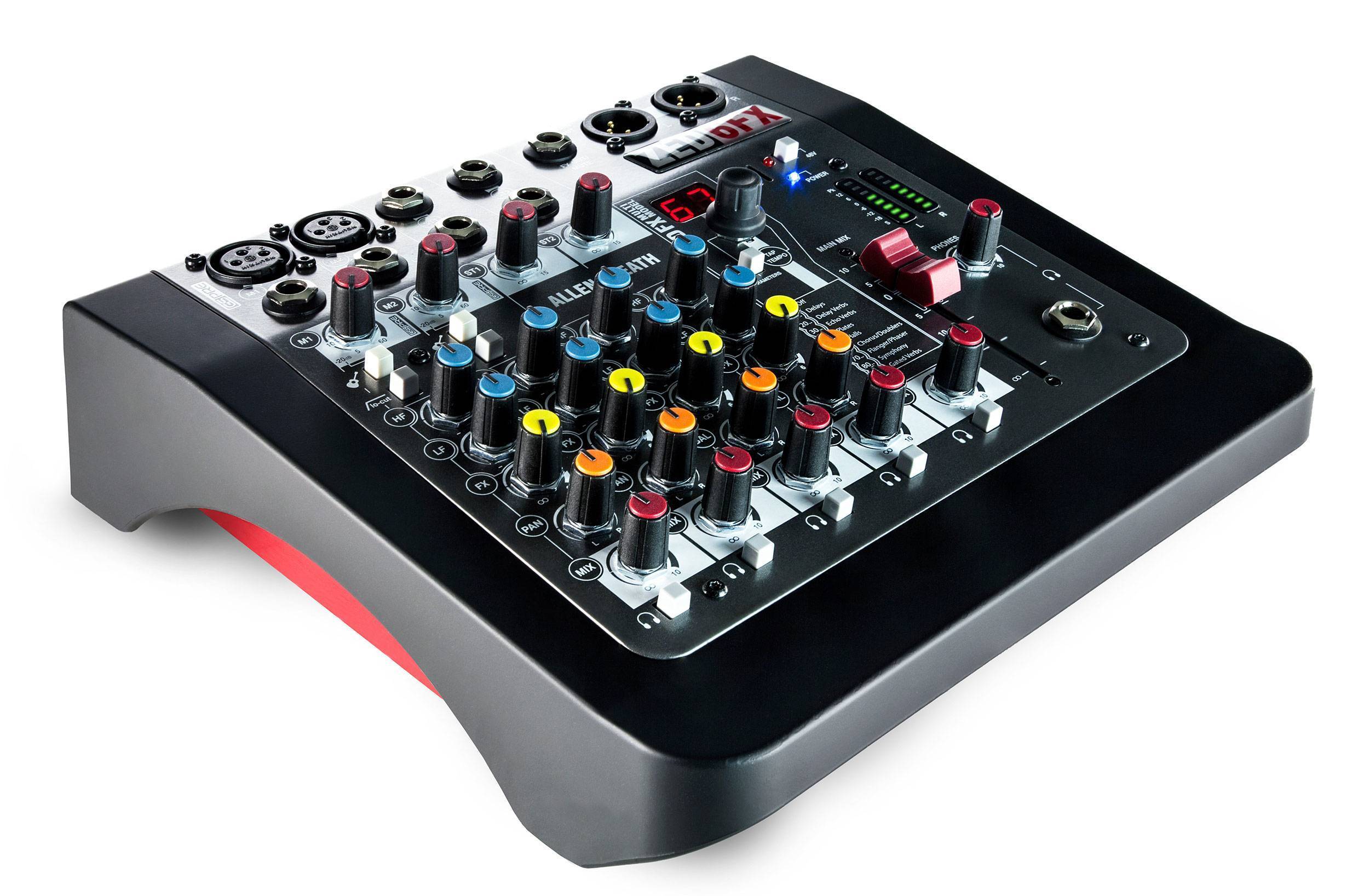 Zed 10FX оснащен профессиональным процессором эффектов, использующим собственный алгоритм, разработанный выдающимися инженерами Allen & Heath. Диапазон эффектов – от классических Reverb до Flanger и Chorus. Выбор эффектов осуществляется нажатием кнопки интерфейса вверх/вниз, а интенсивность задержки может быть задана кнопкой TAP. Удерживание TAP позволяет настроить параметры эффектов. Аудио сигнал в DSP преобразуется с помощью 24-битных конвертеров высокого динамического диапазона, работающих на частоте сэмплирования 48кГц и обеспечивающих низкое искажение сигнала и “прозрачные” эффекты.