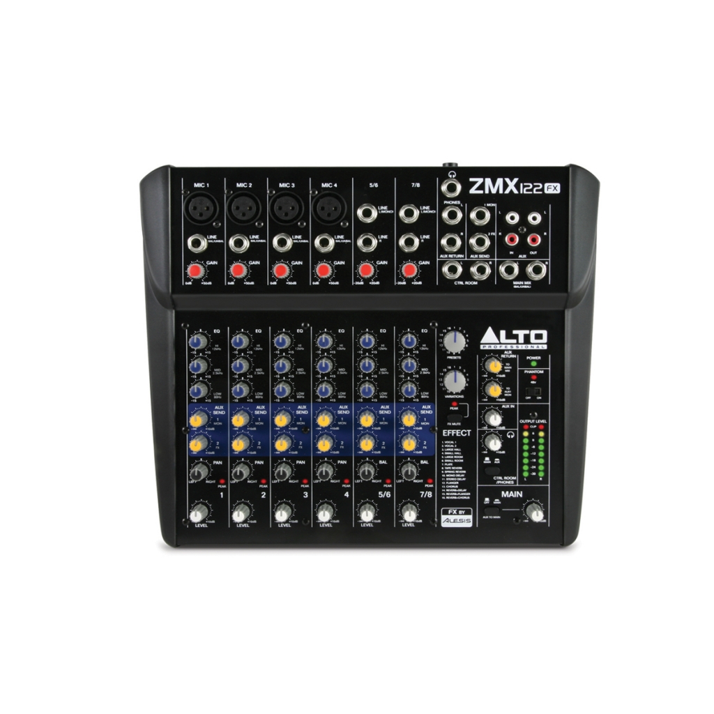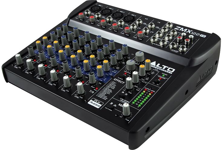 Профессиональные функции в переносном устройстве. ALTO ZMX122FX это восьмиканальный микшер со всеми входами, выходами, маршрутизацией, эквалайзером и эффект процессором, необходимыми для небольших живых выступлений.