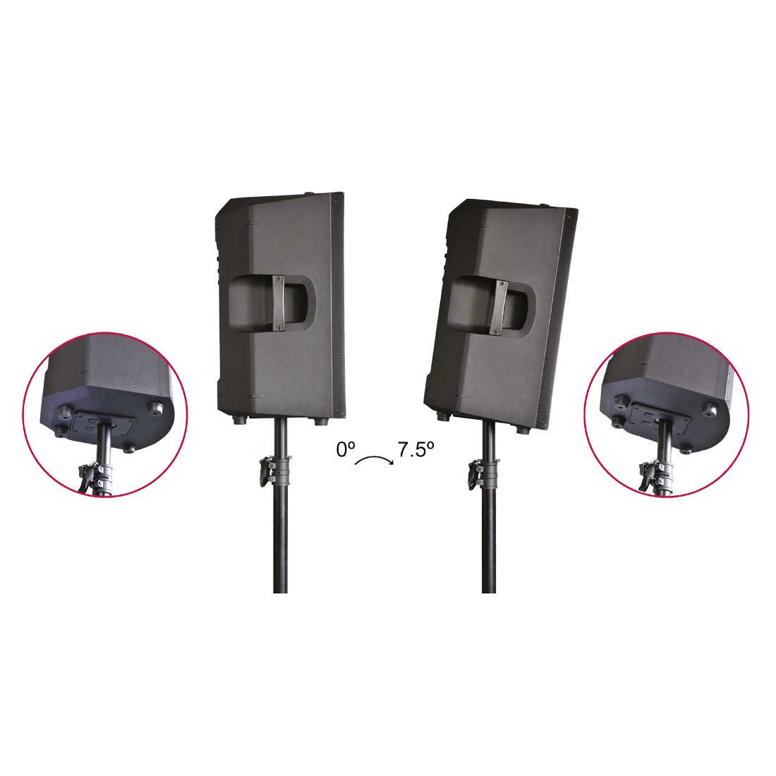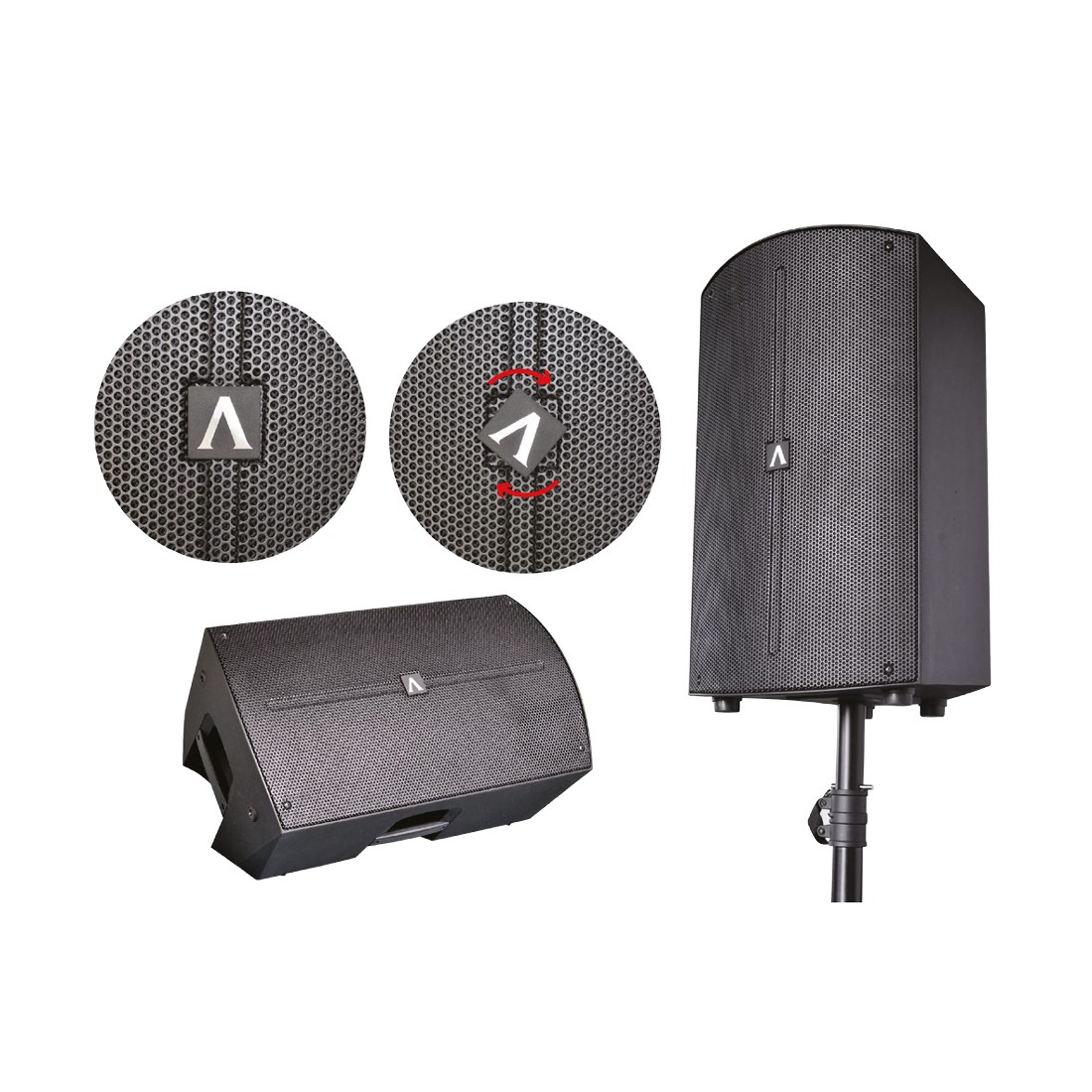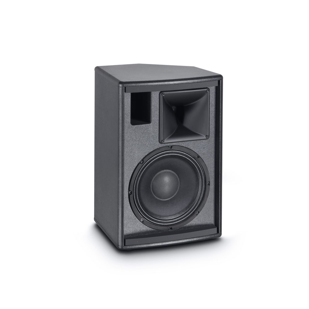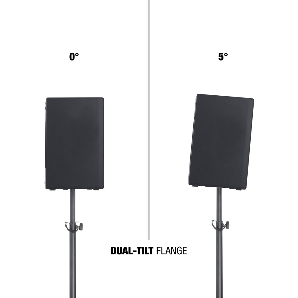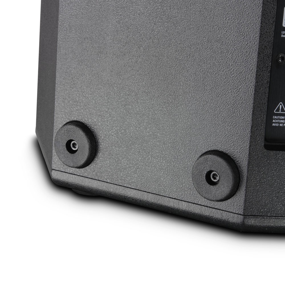 • Скошенная задняя часть корпуса позволяет использовать колонку в качестве напольного сценического монитора (двойной угол наклона), монитора для DJ и музыкантов