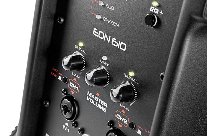 Комбинированный вход (с выбором типа источника) обеспечивает простое и универсальное использование, подходящее для динамического микрофона и стандартного линейного входа. Пользователь может повысить нижнюю и верхнюю частоты с помощью удобной функции предварительной настройки DSP.