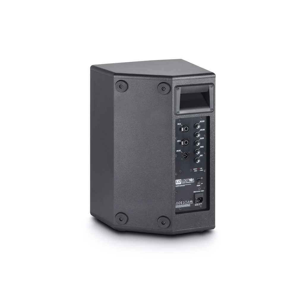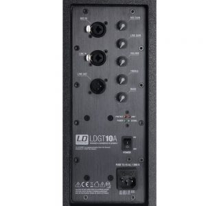 LD Systems GT 10 A оснащен встроенным цифровым усилителем класса D на базе высокоэффективной технологии SMPS с максимальной мощностью на выходе 800 Вт. Для подключения предусмотрены линейные и микрофонные входы с разъемами XLR и 6.3 мм джек. LD Systems GT 10 A оборудована двухполосным эквалайзером и защитой от перегрузки и короткого замыкания.