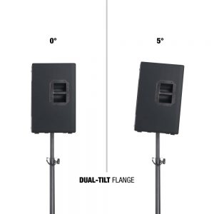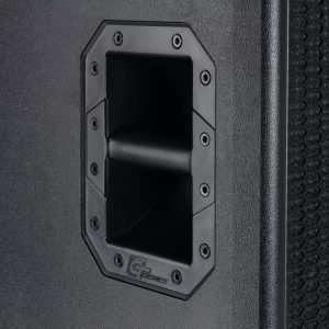 • Скошенная задняя часть корпуса позволяет использовать колонку в качестве напольного сценического монитора (двойной угол наклона), монитора для DJ и музыкантов