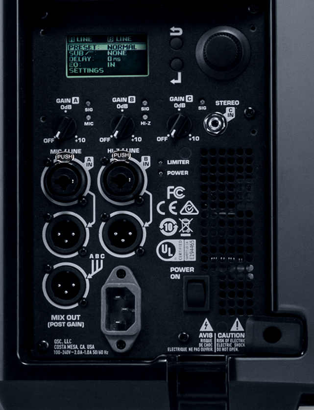 Комбинированный вход (с выбором типа источника) обеспечивает простое и универсальное использование, подходящее для динамического микрофона и стандартного линейного входа. Пользователь может повысить нижнюю и верхнюю частоты с помощью удобной функции предварительной настройки DSP.